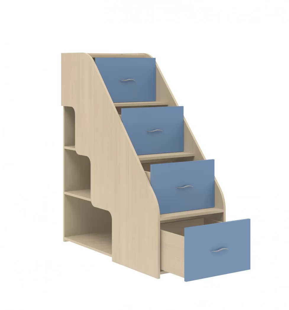 Лестница-комод "Дельта-23.2" – это функциональное дополнение к двухъярусным кроватям и модульным детским комнатам серии "Дельта". Этот компактный стильный предмет интерьера позволяет значительно сэкономить место в детской комнате, совмещая в себе функции двух элементов мебели. Надежные ступени оборудованы четырьмя вместительными выдвижными ящиками, которые можно использовать для хранения личных вещей, а также тремя открытыми полками.