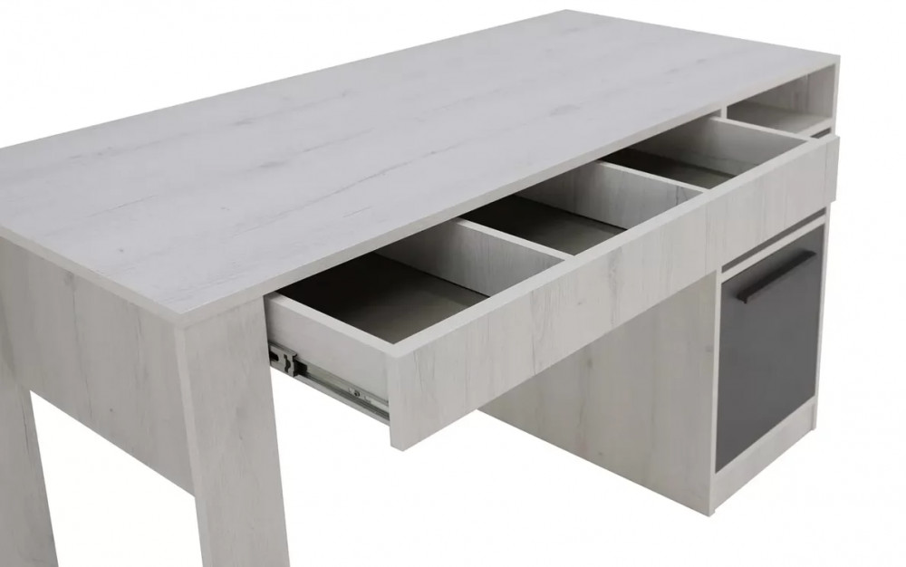 Стол с тумбой и выдвижными ящиками – идеальное решение для подростковой комнаты. Крючки позволят повесить рюкзак или пакет, ящики и полки уместят в себя все учебники, книжки или предметы для творчества.