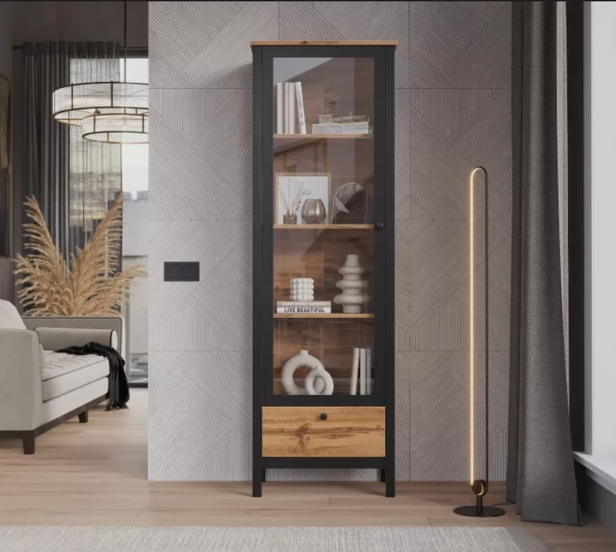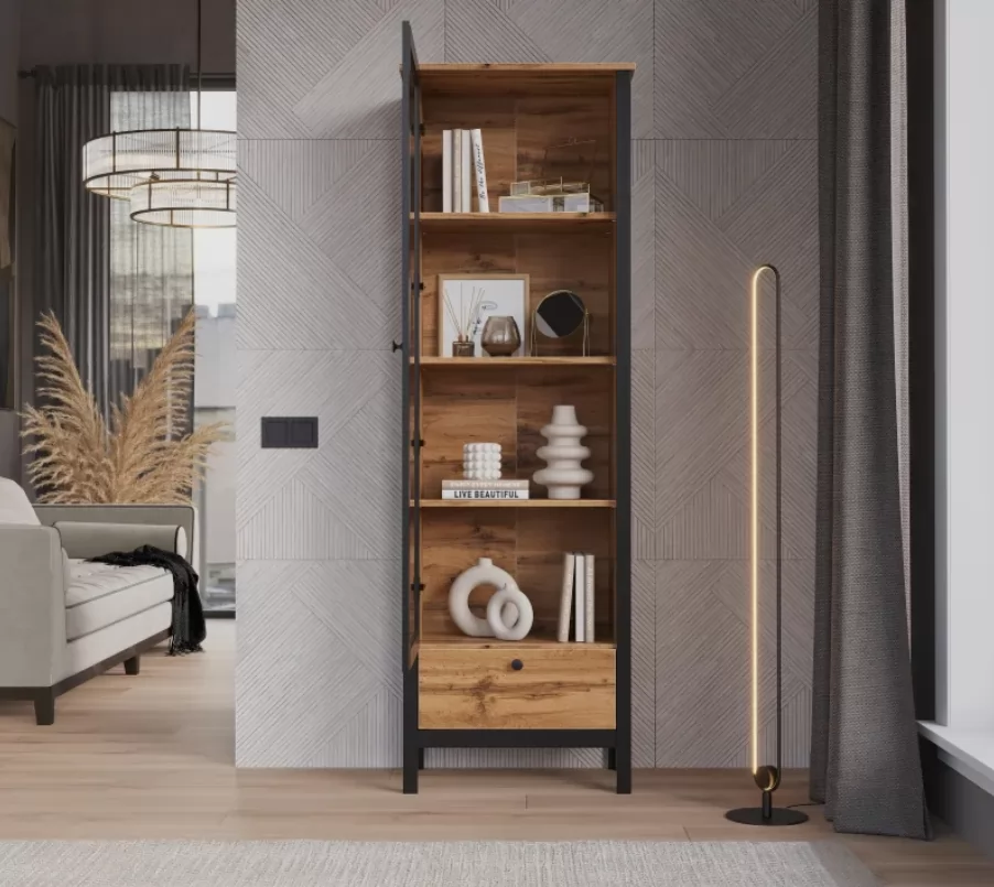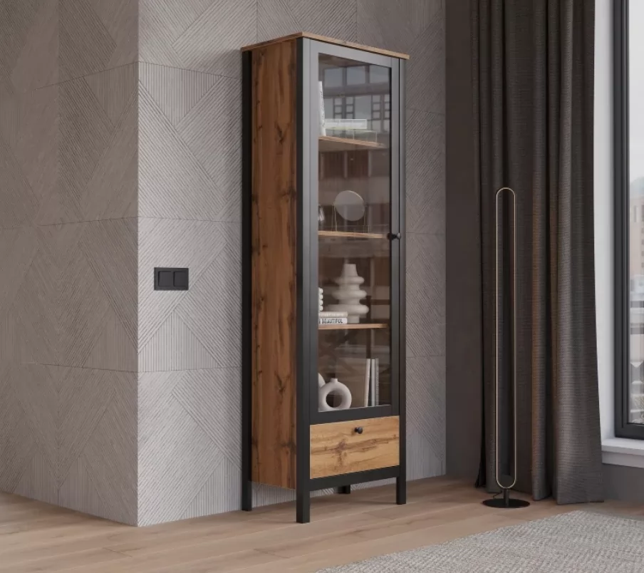 Витрина Loft дуб вотан REG1W1S — компактное решение для обустройства гостиной, кабинета или столовой.