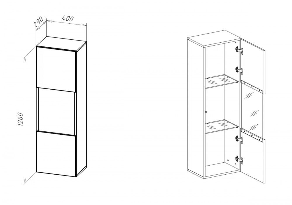 Размеры (ШхВхГ): 400 х 1260 х 290 мм