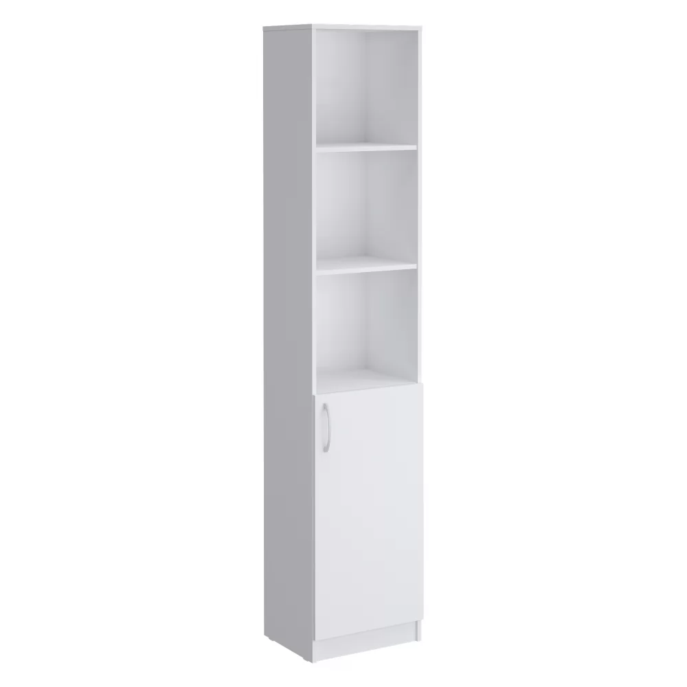 Стеллаж, совмещающий в себе 2 функции - открытые полки для декора или часто необходимых вещей и практичные закрытые полки - для того, что Вы не хотите показывать в интерьере.