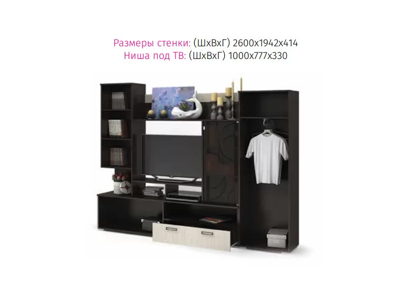 • Современный и стильный дизайн стенки прекрасно украсит интерьер вашего дома.