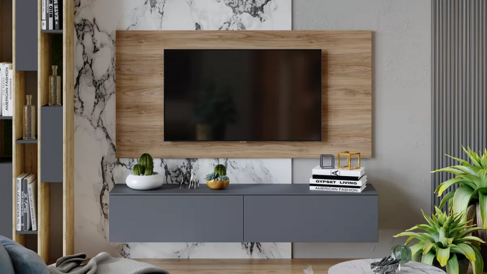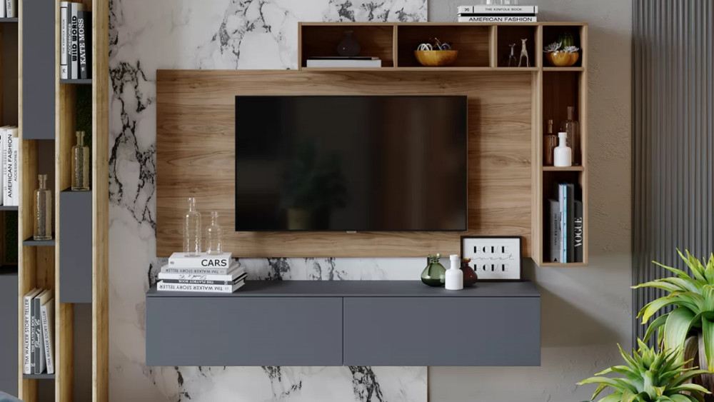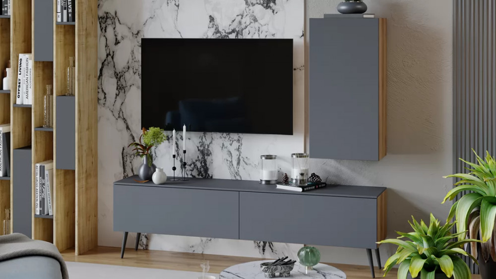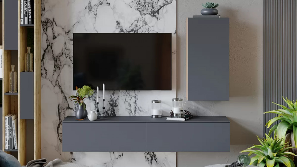 Модульная гостиная «Порто» Яблоня Беллуно, Графит софт в Лангепасе