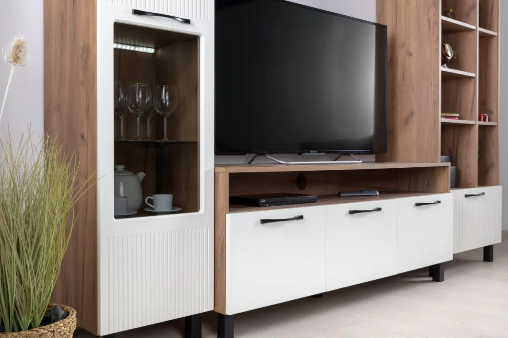 Тумба Манхеттен 13.231 будет отличным дополнением интерьера любой комнаты. Изделие поможет разместить телевизор для более комфортного просмотра новостей, сериалов и различных телепередач. Открытая ниша предназначена для необходимой аппаратуры. А три выдвижных ящика пригодятся для хранения различных вещей и предметов.