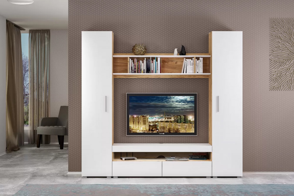 Белый цвет – основа большинства стилей. Это касается и классики, и современных ультрамодных трендов. Сложно найти что-то более универсальное и практичное для оформления современных гостиных. Гостиная "Альба 3" с белыми глянцевыми фасадами наполняет комнату светом, визуально расширяет пространство. Корпус модулей в текстуре светлого дерева будет уместен в интерьере в скандинавском или эко стиле.
