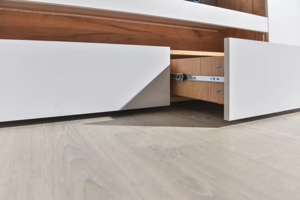 • Фурнитура: выкатные ящики на шариковых направляющих полного выдвижения.