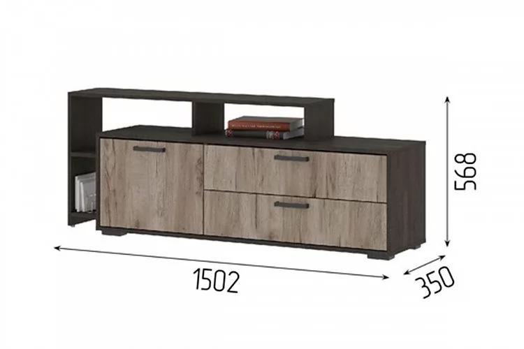 Высота, мм-568Ширина, мм-1502Глубина, мм-350Вес, кг-35Материал корпуса-ЛДСПМатериал фасада-ЛДСПЦвет корпуса-Камень железныйЦвет фасада-Дуб крафт серыйКоличество дверей-1Количество ящиков-2