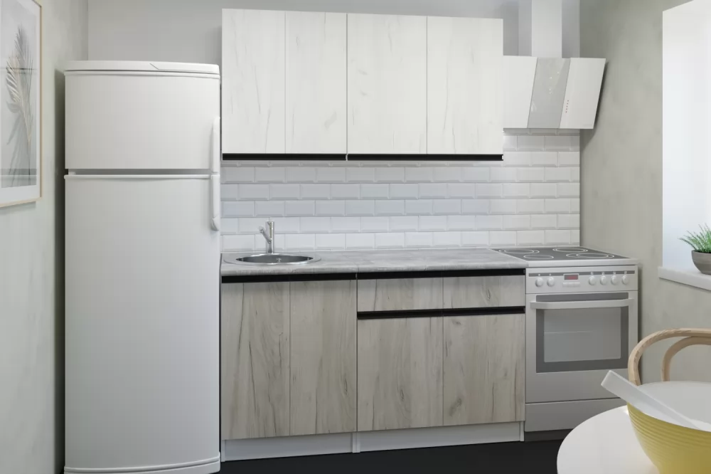 Прямые готовые кухни рациональны для маленьких квартир. При прямой планировке кухни важно предусмотреть место для холодильника и учесть его габариты. Если ваша кухня объединена с гостиной, или же настолько просторная, что позволяет сделать полноценную обеденную зону для большой семьи, то смело выбирайте линейную конфигурацию кухни.