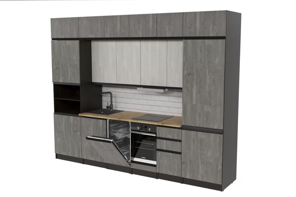 Кухонный гарнитур Симфония люкс из ЛДСП в модном цвете "Бетон светлый" впишется в современный дизайн интерьера. Подойдет как для частного дома, так и для небольшой квартиры. Напольные и подвесные шкафы позволят разместить всю кухонную утварь. Гарнитур состоит из набора шкафов, которые органично комбинируются между собой. Ящики, полки, навесные шкафы, тумбы и пеналы можно менять местами, создавая практичное рабочее пространство.
