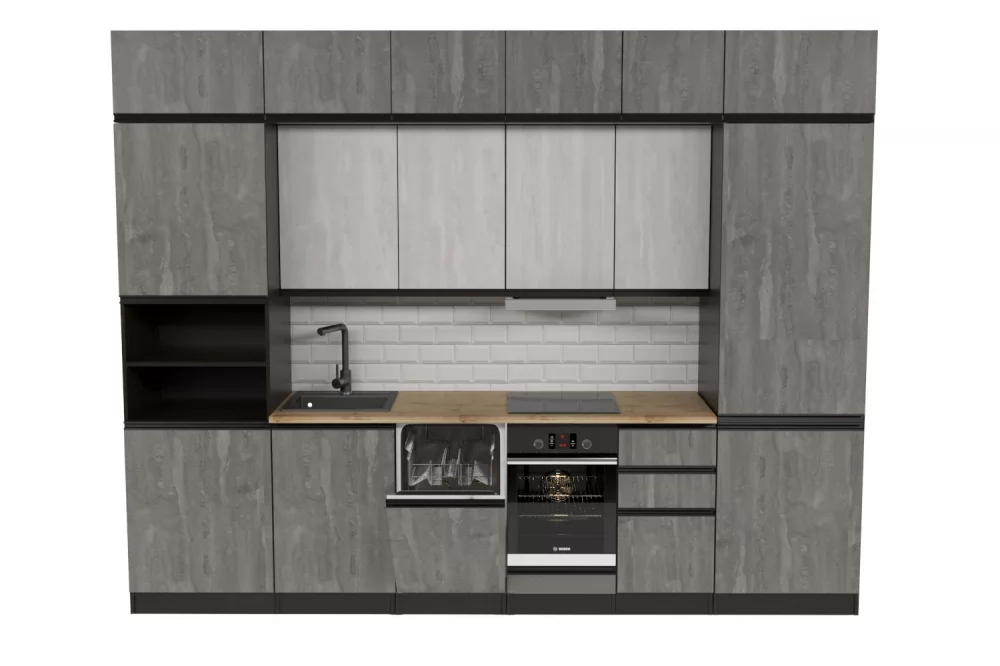 Мойки, смесители и посудосушители в комплекты гарнитуров не входят.