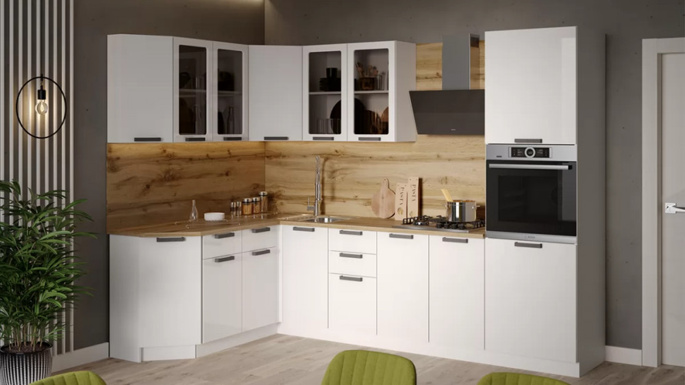 Модульная кухня «Детройт» Дуб крафт золотой/Белый глянец/Дуб крафт золотой
