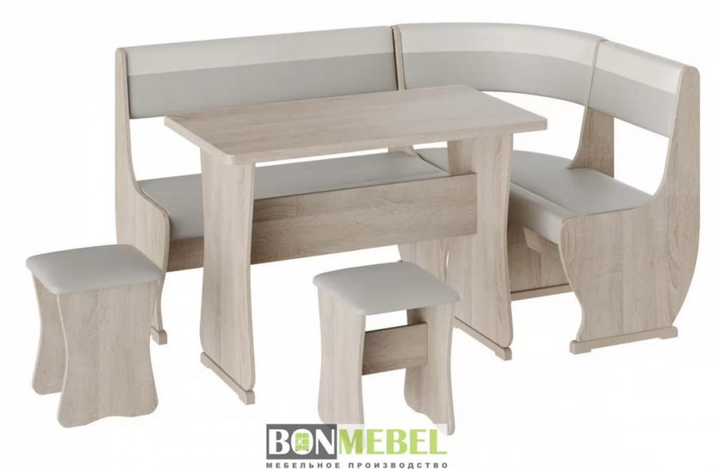 Небольшой кухонный уголок с мягкой обивкой в элегантном современном стиле. Модель, подходящая к большинству интерьеров, и создающая атмосферу уюта и комфорта на вашей кухне. Сборка скамьи универсальная — вы можете определить угол как с правой, так и с левой стороны.
