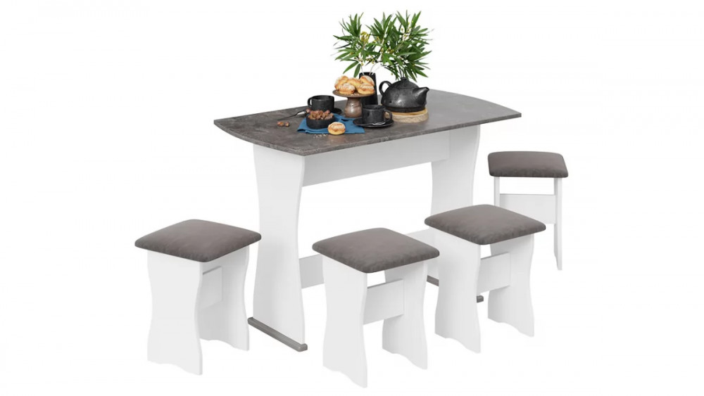Обеденная группа тип 1 Белый/Ателье темный/Иск.замша Stone в Лангепасе