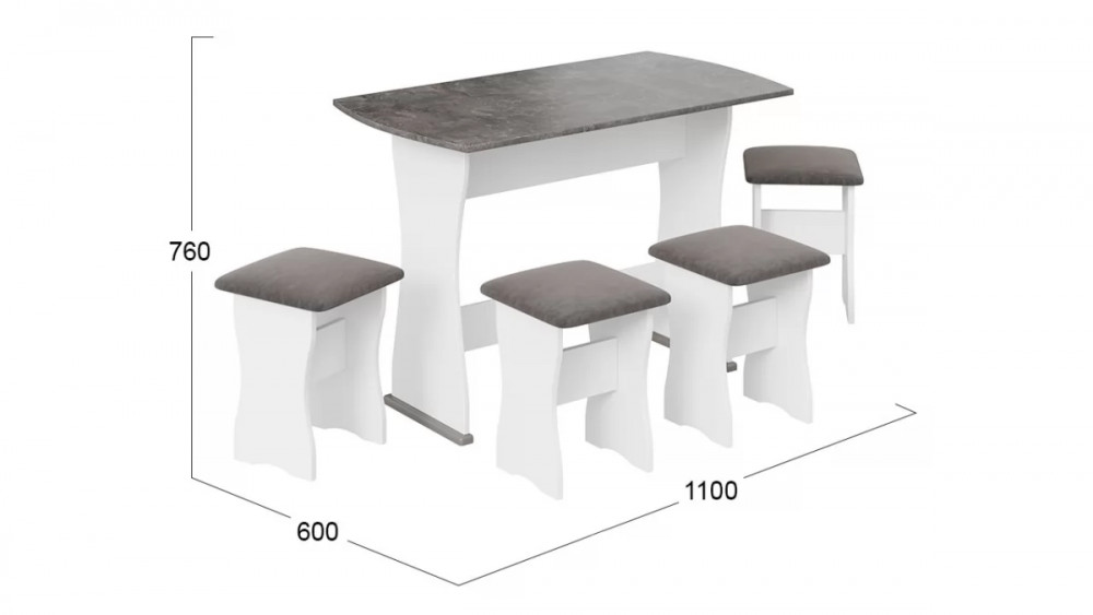 Дополнительная информация: Комплектация : стол + 4 табурета, материал мягкого сидения - кожзам.