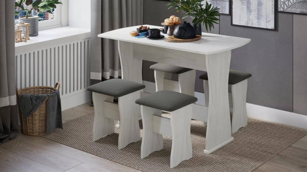 Обеденная группа тип 1 Дуб крафт белый/Велюр серый в Лангепасе
