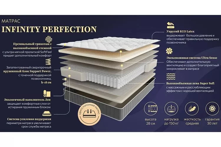 Матрас INFINITY PERFECTION 1400*2000мм (Эколатекс/пена/лен, ср. жесткий, h28см)
