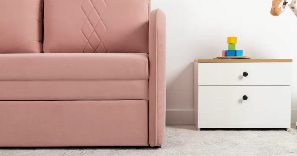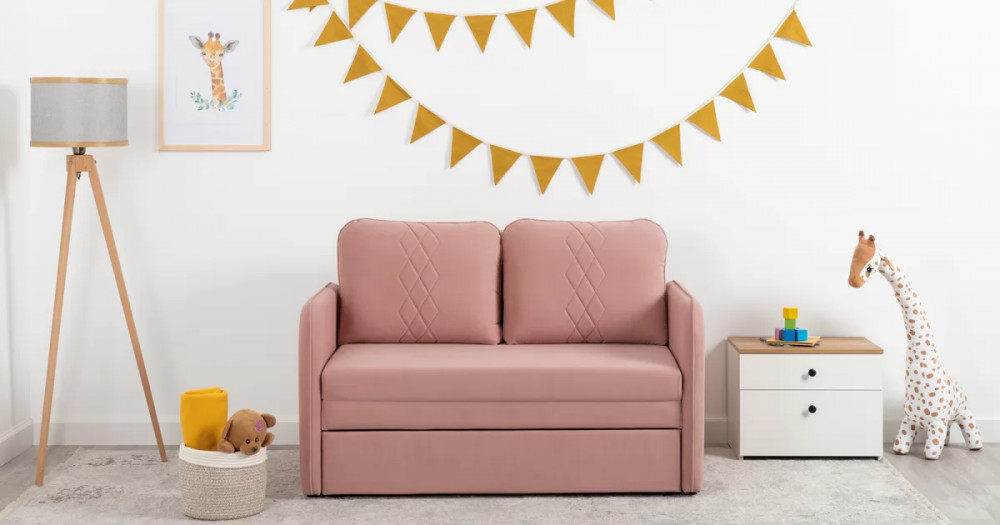 Стильный компактный диван для детской и гостиной. При своих скромных размерах он трансформируется в полноценное спальное место для детей и подростков. Лаконичный дизайн в виде декоративной отстрочки подчеркивает фактуру велюра, а небольшие размеры позволят разместить его в любом пространстве.