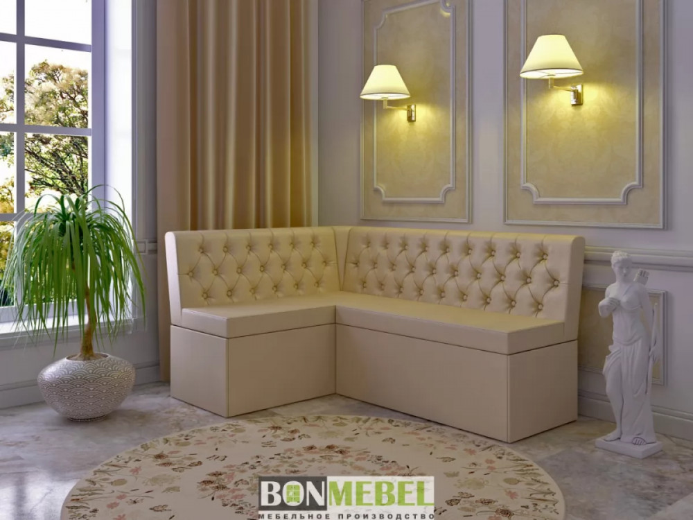 Очаровательная скамья угловая с элегантной стяжкой капитоне на спинке сделает уютной любую кухню, предоставив возможность организовать  обеденную  зону  в  компактной  кухне.  У  этой  модели масса  преимуществ:  универсальный  угол,  вместительный  отсек  для хранения бытовых мелочей и белья. Удобная скамья и спинка углового дивана делают пребывание за столом необыкновенно комфортным. Обивка из искусственной кожи – идеальный вариант для кухонной мягкой мебели, поскольку практически не требует усилий при уборке.