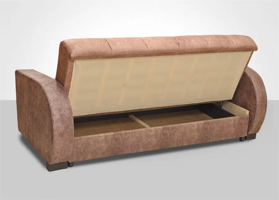 Комфортный диван в современном стиле с мягкими фигурными подлокотниками. Комплектуется коробом для белья.