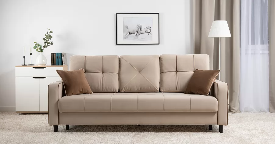 Модные диваны Черри Н порадуют поклонников современного стиля. Контрастные канты, пуговицы и декоративные подушки делают этот диван ярким акцентом интерьера.