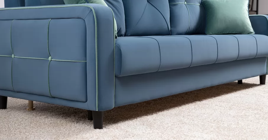 ДВПоОснование сиденья: ППУ на блоке плоских пружин "змейка"Приспинные подушки, шт:  3Съемные чехлы приспинных подушек:  естьДекоративные подушки, шт:  2Наполнитель подушек:  крошка ППУ и полиэфирное волокно «шарики»Материал опор:  лакированное деревоВысота опор (мм):  120