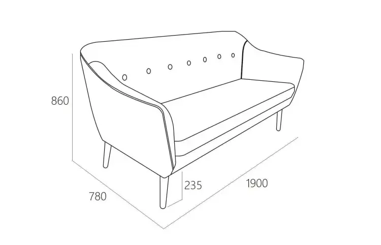 Габаритные размерыШирина: 1900Глубина: 780Высота: 860Дополнительная информацияГлубина посадочного места (без подушек): 520Высота сиденья от пола: 480Предельно допустимая нагрузка на сиденье (кг): 90Посадочное место дивана до ПП ДхГхВ: 1540 х 520 х 480Наличие ящиков: нетВысота свободного пространства под мебелью: 235Предельно допустимая нагрузка на подлокотник (кг): 30Габаритные размеры подлокотника: 130 х 520 х 670 min (700 max)Посадочное место дивана без ПП ДхГхВ: 1600 х 520 х 480Тип дивана: ПрямойКаркас: Березовая фанераНаполнение: ППУ STМеханизм трансформации: НетБельевой ящик: НетОпоры: Ножки деревянные (Н=230 мм)Гарантия: 18 месяцевКоличество упаковок 1Вес упаковок 43.8Объем упаковок 0.975