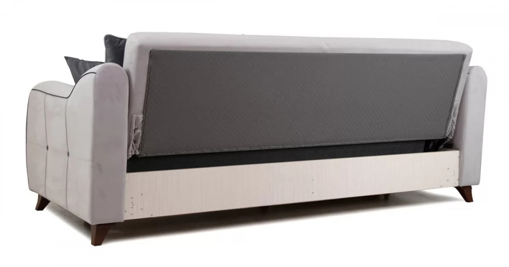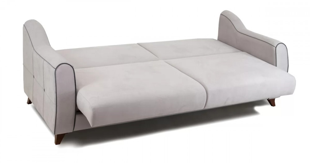 Френсис Диван-кровать арт. ТД 264Габаритысложенный (Д x Г х В, мм): 2280 x 1030 x 900спальное место (Д x Ш, мм): 1950 x 1310высота посадки (мм): 480глубина сиденья (мм): 570максимально допустимая нагрузка: 80 кг на одно посадочное место, 100 кг на одно спальное местоМеханизм трансформацииКнижка с 0 стенойБельевой ящикестьс перегородкой по центру (2 отделения)размер отделения (Д x Ш, мм): 890 x 840 x 200Варианты исполнения5 артикуловсочетание тканей только как на фотоМатериалыосновная ткань: Амиго (велюр)выполняется в тканях: Амиго эш (светло-серый), Амиго графит (темно-серый)каркас: фанера деревянный брус ДСП ДВП ЛДСП ДВПооснование матраса: ППУ на блоке плоских пружин «змейка», периотекприспинные подушки, шт: 3декоративные подушки, шт: 2наполнитель подушек: полиэфирное волокно «шарики»материал опор: пластикцвет опор: коричневыйДекордекоративный кант, пуговицы, отстрочка, утяжки на подушках и подлокотникахНазначениев гостиную в гостевую комнатуТребуется ли сборкадаУпаковкаколичество коробок, шт: 2общий вес с упаковкой, кг: 88Гарантия: 18 месяцев