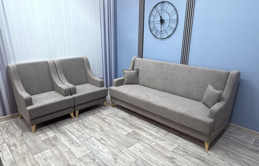 Это традиционная модель, сочетающая в себе простоту, легкость и комфорт. Такие комплекты универсальны и прекрасно смотрятся в помещениях с любым интерьером. Два кресла с комфортной спинкой и удобной посадкой обеспечивают максимальный комфорт при отдыхе.