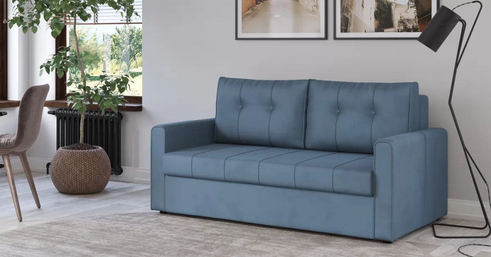 Габаритысложенный (Д x Г х В, мм): 1600 x 1040 x 830разложенный (Д x Г х В, мм): 1600 x 2100 x 760спальное место (Д x Ш, мм): 2020 x 1380высота посадки (мм): 420глубина сиденья (мм): 780высота спинки (мм): 440высота подлокотника от сиденья (мм): 190максимально допустимая нагрузка: 120 кгМеханизм трансформацииТрехсекционная еврокнижкаВарианты исполнения4 артикуласочетание тканей только как на фотоМатериалыосновная ткань: Купер (жаккард) / Тори (велюр) / Киви (велюр) / Велутто (велюр)выполняется в тканях: Тори 83 велюр (серо-синий)каркас: