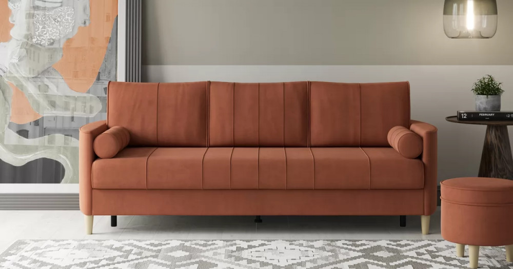 Лора Диван-кровать арт. ТД 332Габаритысложенный (Д x Г х В, мм): 2200 x 970 x 850разложенный (Д x Г х В, мм): 2200 x 1370 x 610спальное место (Д x Ш, мм): 1910 x 1370высота посадки (мм): 460глубина сиденья (мм): 560высота спинки (мм): 420высота подлкотника от сиденья (мм): 170максимально допустимая нагрузка: 80 кг на одно посадочное место, 100 кг на одно спальное местоМеханизм трансформацииЕврокнижка с механизмом раскладки «тик-так»Бельевой ящикестьс перегородкой по центру (2 отделения)размер отделения (Д x Ш, мм):  786 x 688 x 120Варианты исполнения6 артикуловсочетание тканей только как на фотоМатериалыосновная ткань: Ультра (велюр)выполняется в тканях: Ультра терра (кирпичный)каркас: фанера