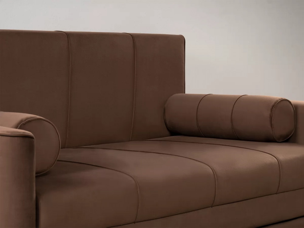 ППУ на основании из гнутоклееных латдекоративные подушки, шт: 2наполнитель подушек: полиэфирное волокно «шарики»материал опор: пластикцвет опор: черныйвысота опор (мм): 25ДекорНа фронтальной части спинки дивана прострочены защипы (3 шт.). По торцам втачен кант. На декоративных валиках прострочены защипы -2 шт. и защип вдоль круглого торца. Сидение имеет 3 защипа. Верхний торец подлокотников полукруглый, на ребре полукруга втачен кант.Назначениев молодежную