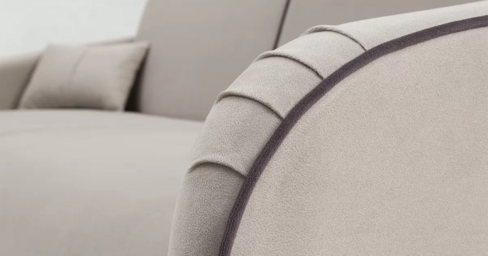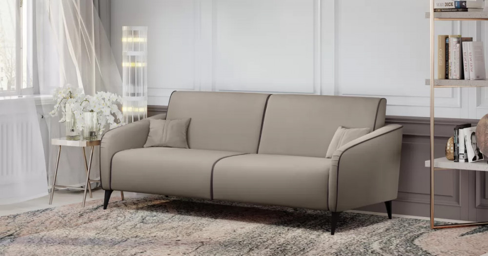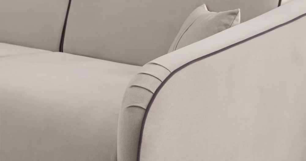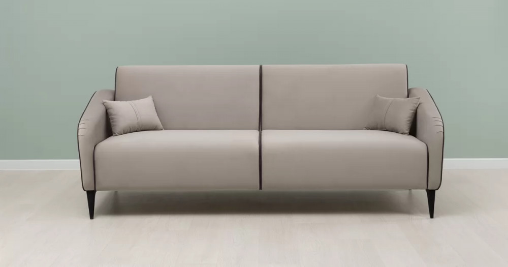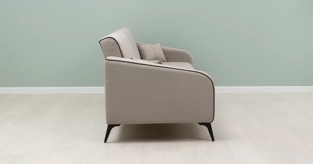 ДВПдекоративные подушки, шт: -2наполнитель подушек: -крошка ППУ и полиэфирное волокно «шарики»материал опор: металлцвет опор: черныйвысота опор (мм): 165ДекорСпинка и сиденье разделяются пополам двойным кантом по центру и одинарным по краям сидения, для придания одной единой формы. Подлокотники с изгибом на лицевой стороне и мягкими закругленным углом со складками, с выраженным контрастным ровным кантом по внешнему контуру изделия и изогнутой линией канта.Назначениев гостиную