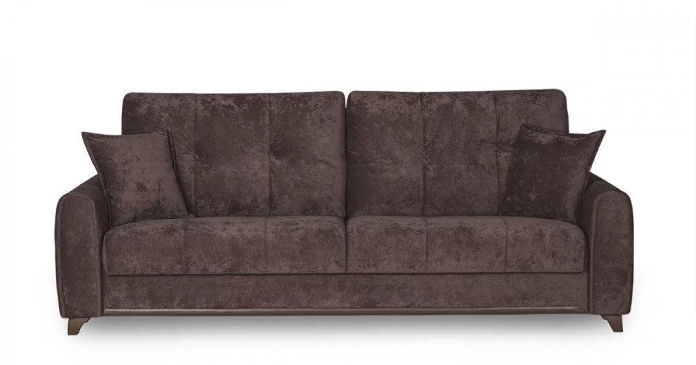 Материалыосновная ткань: Романс (велюр) / Марвел (кож.зам)выполняется в тканях: Романс ява (тёмно-фиолетовый), Марвел шоколад (шоколадный)каркас: фанера деревянный брус ДСП ЛДСП ДВПооснование матраса: ППУ на блоке плоских пружин "змейка"приспинные подушки, шт: 2съемные чехлы приспинных подушек: естьдекоративные подушки, шт: 2наполнитель подушек: крошка поролона и полиэфирное волокноматериал опор: пластикцвет опор: коричневыйвысота опор (мм): 80Бельевой ящикестьс перегородкой по центру (2 отделения)размер отделения (Д x Ш, мм): 890 x 840 x 200Требуется ли сборкадаУпаковкаколичество коробок, шт: 2общий вес с упаковкой, кг: 82,4Гарантия: 18 месяцевГабаритысложенный (Д x Г х В, мм): 2340 x 1050 x 910разложенный (Д x Г х В, мм): 2340 x 1310 x 600спальное место (Д x Ш, мм): 1950 x 1310высота посадки (мм): 470глубина сиденья (мм): 500высота спинки (мм): 540высота подлокотника от сиденья (мм): 180максимально допустимая нагрузка: 80 кг на одно посадочное место, 100 кг на одно спальное местоМеханизм трансформацииКнижка с 0 стенойБельевой ящикестьс перегородкой по центру (2 отделения)размер отделения (Д x Ш, мм): 890 x 840 x 200Декорзащипы на подушках и подлокотниках с утяжкой на 2 пуговицы из осн. материала, защипы на сидушке, декоративный кант на передних торцах подлокотников
