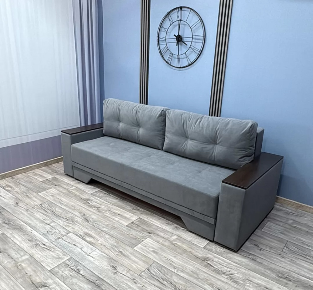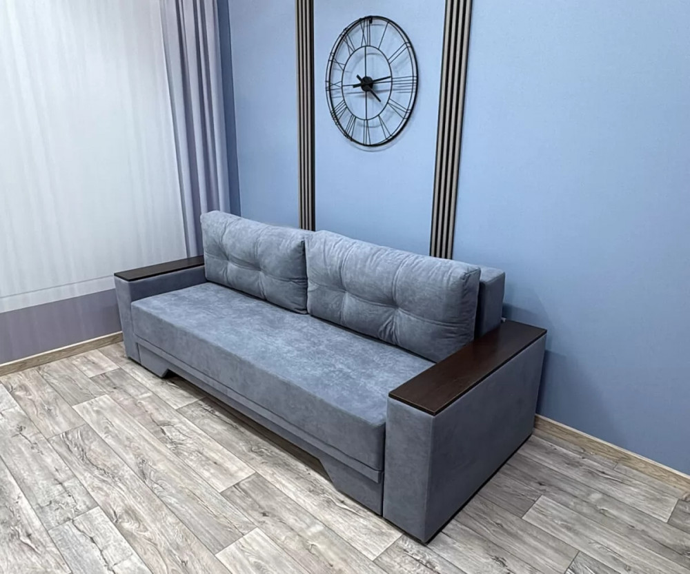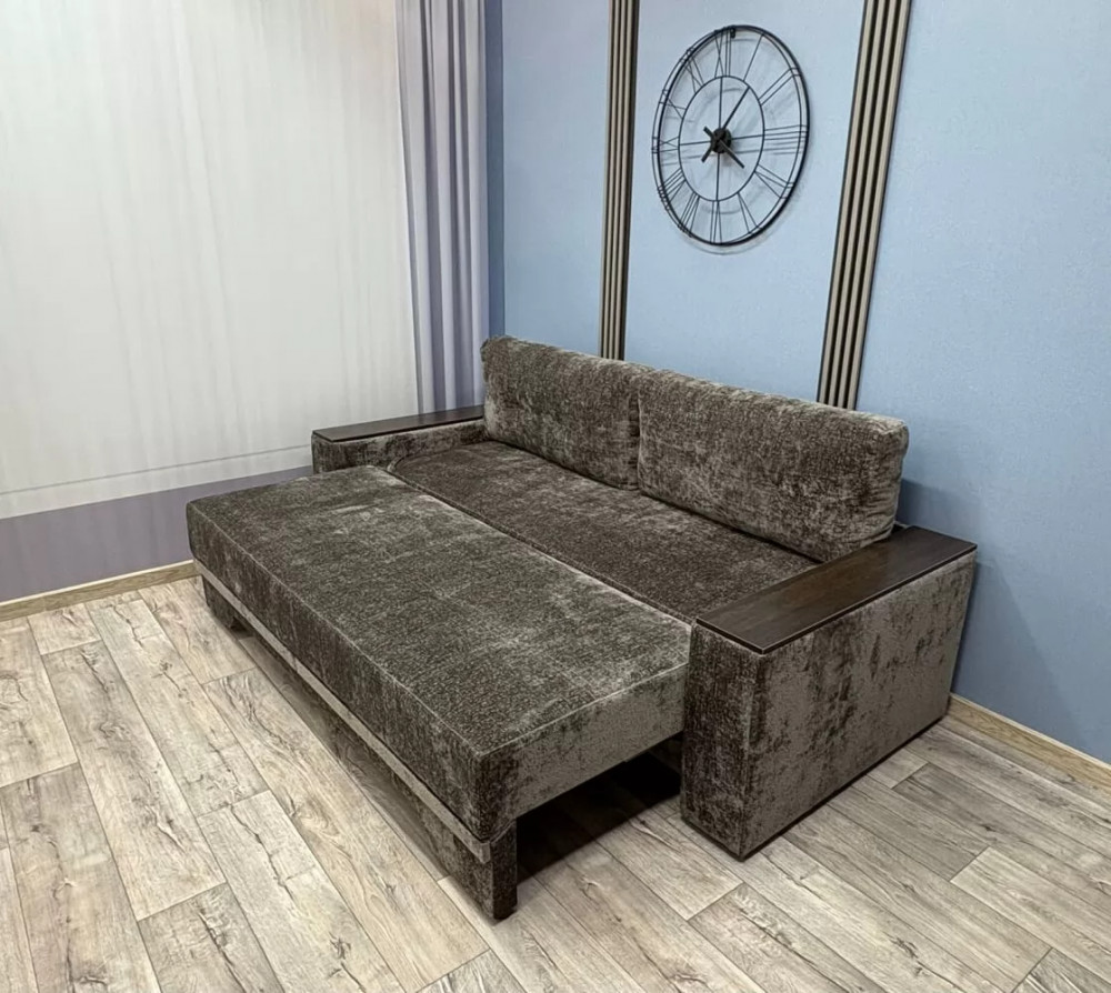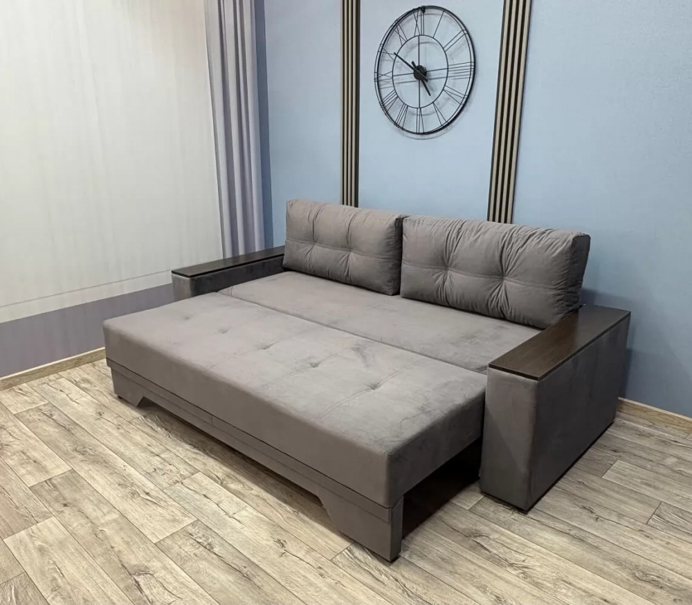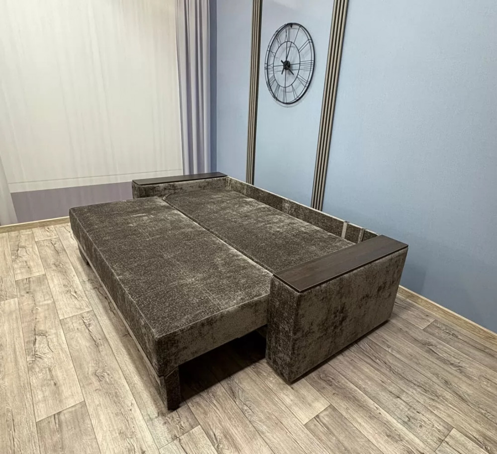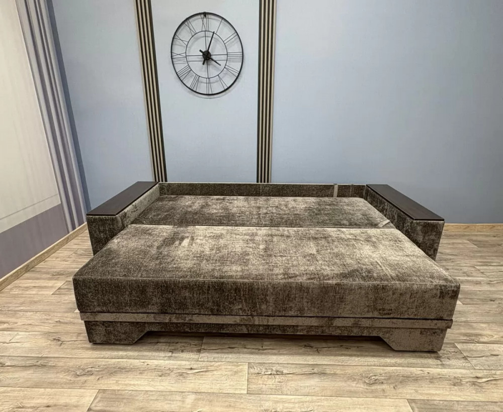 Прекрасное сочетание элегантности и изящества. Подлокотники с декоративными накладками делают его безупречным для любого интерьерного решения. Механизм трансформации «Пантограф» (тик-так) позволяет без особых усилий формировать ровное спальное место. Так же имеется вместительный короб для постельных принадлежностей.