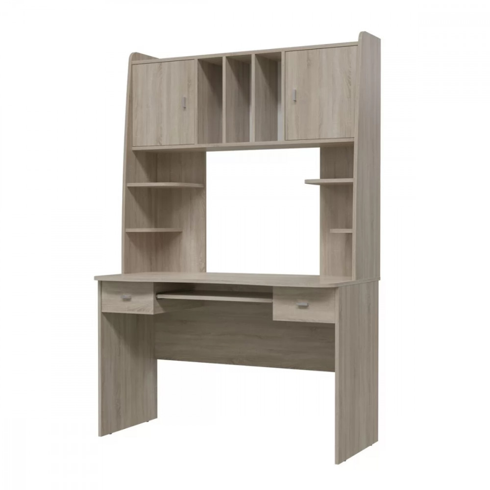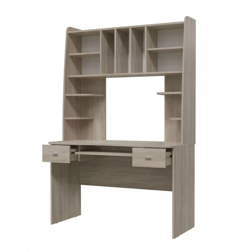 Стол рабочий «Бета» - прекрасное дополнение к молодёжной комнате. Стол оборудован удобными открытыми полочками для различных мелочей, открытыми вертикальными полками для книг и горизонтальными полками за двумя распашными дверями. Также стол оснащён двумя выдвижными ящиками и полкой для клавиатуры.