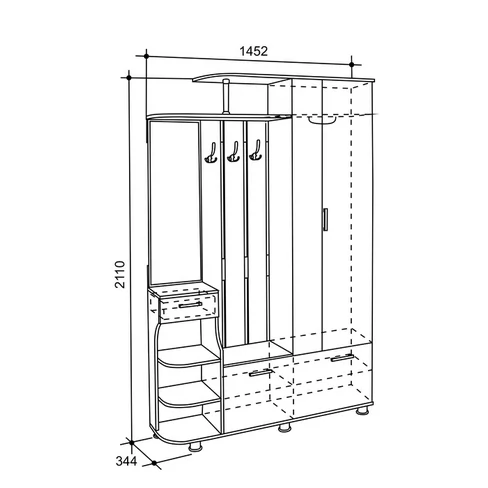 Размер:ш=1452 мм*г=344 мм*в=2110 мм