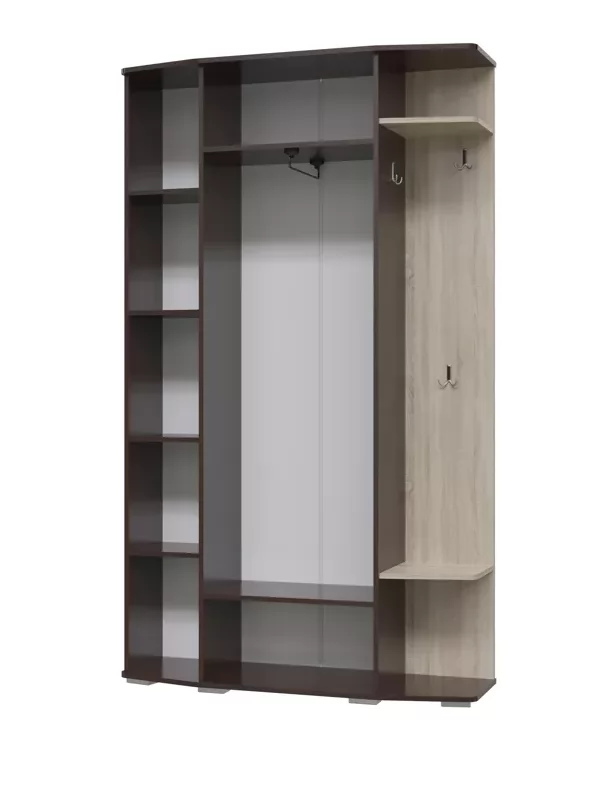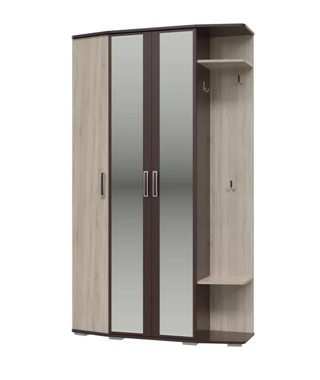 Модная, компактная и удобная прихожая «Паола» выполнена в сочетании цветов «Венге»/«Дуб Сонома», оборудована тремя распашными дверьми, которые скрывают за собой вместительные полки и штангу для одежды. Также, прихожая оснащена двумя зеркалами и крючками для одежды. Универсальная сборка.