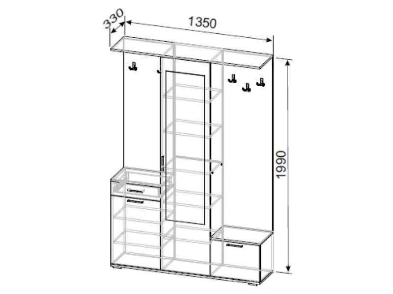 *Размеры (ВхШхГ), мм:1990х1350x330 мм