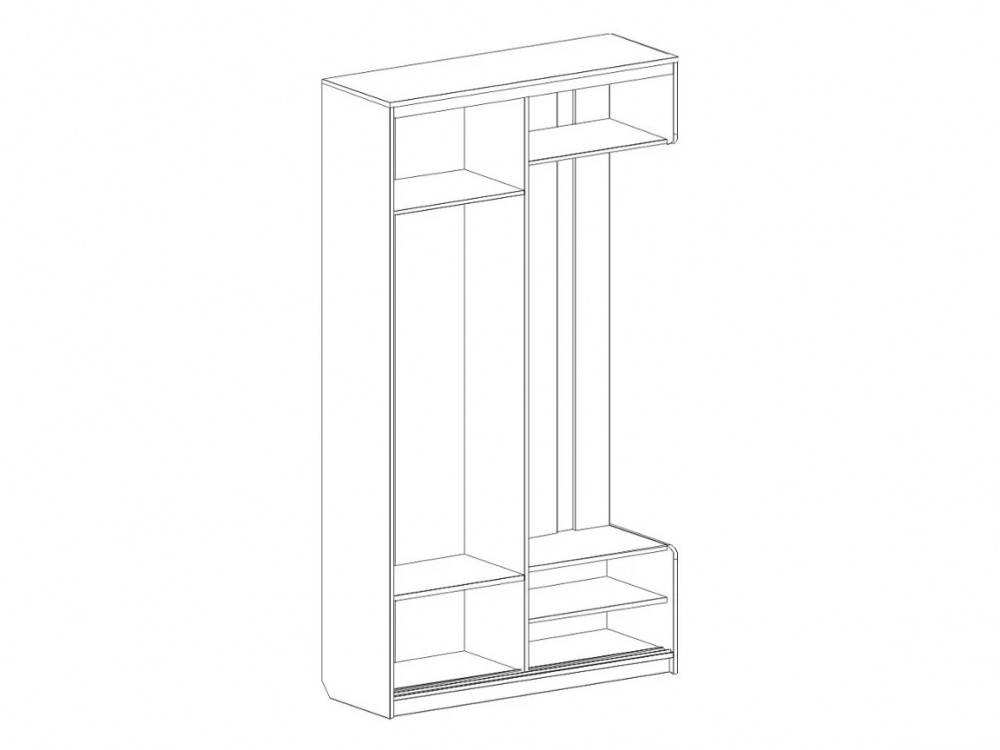 - дверца шкафа, за которой расположились полки и штанга для верхней одежды, оснащена двумя зеркалами,