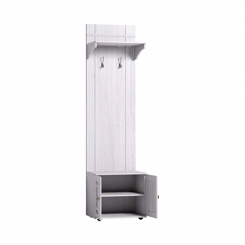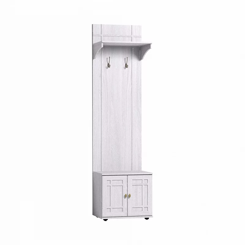 Узкая маленькая прихожая - вовсе не проблема. В простенок шириной всего 56 см может поместиться 7 плечиков с верхней одеждой, несколько курток на крючках, сумки и портфели. И все это на стойке-вешалке! Обязательно крепление к стене на подвесы. Стационарная штанга выдерживает нагрузку до 20 кг.