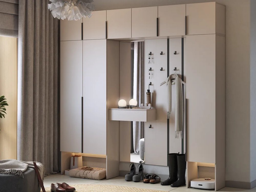 Крючки предоставляют удобное место для хранения сумок или аксессуаров. Выкатной ящик служит дополнительным пространством для хранения мелочей, таких как ключи, кошелек, косметика или другие небольшие предметы.