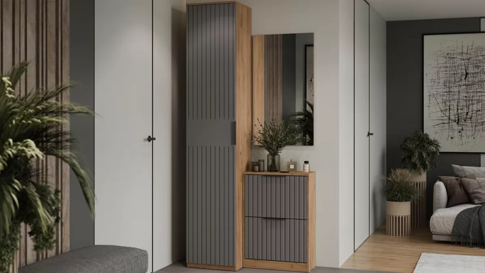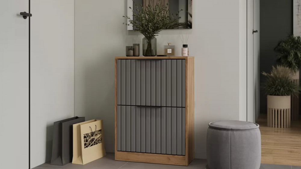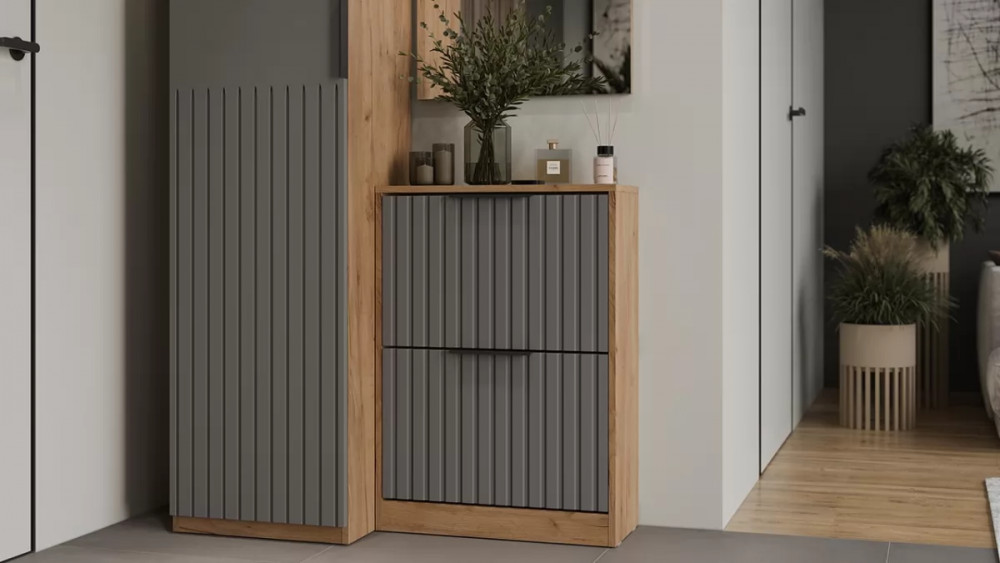 Тумба для обуви «Хилтон» Исп.2 Дуб Крафт золотой, Графит матовый в Лангепасе