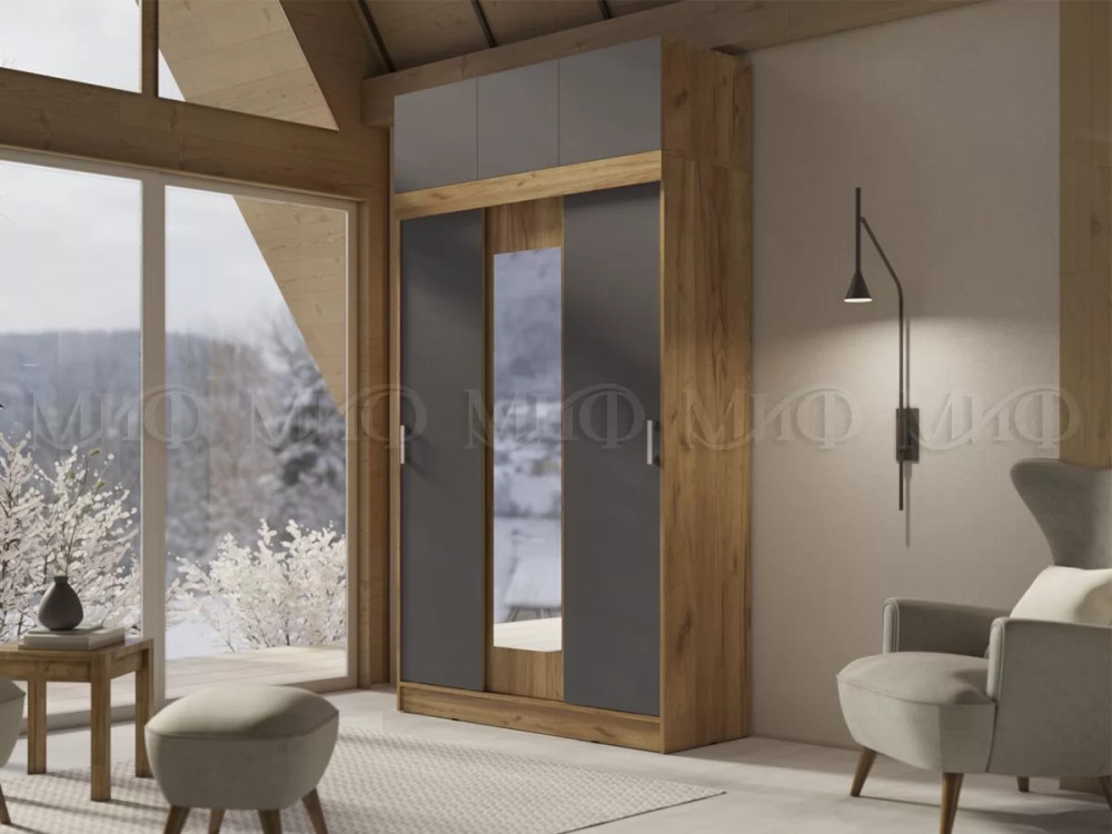 Шкаф с антресолью Басямиф, графит/дуб крафт в Лангепасе