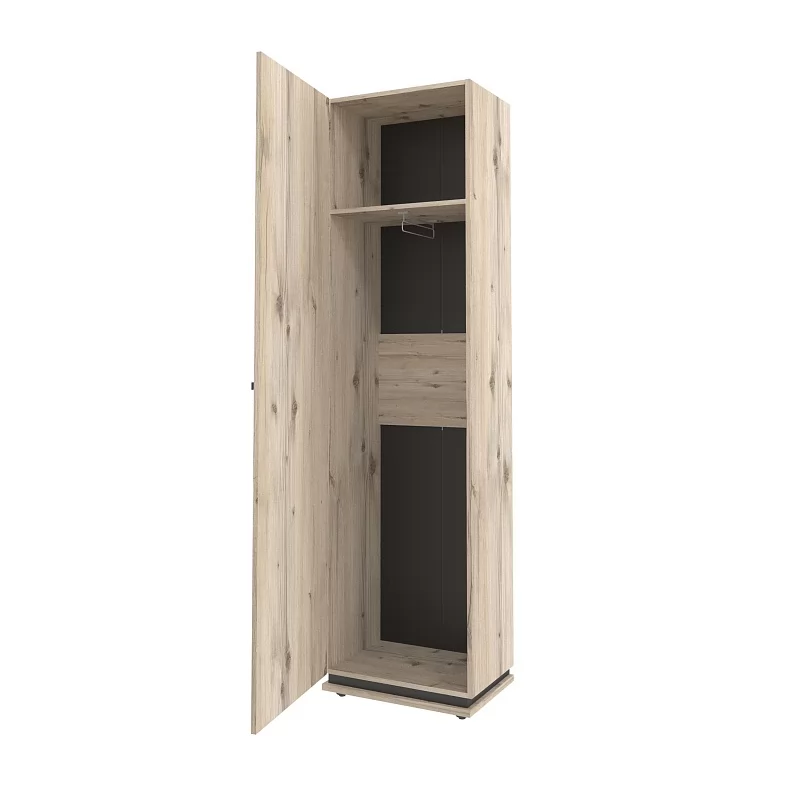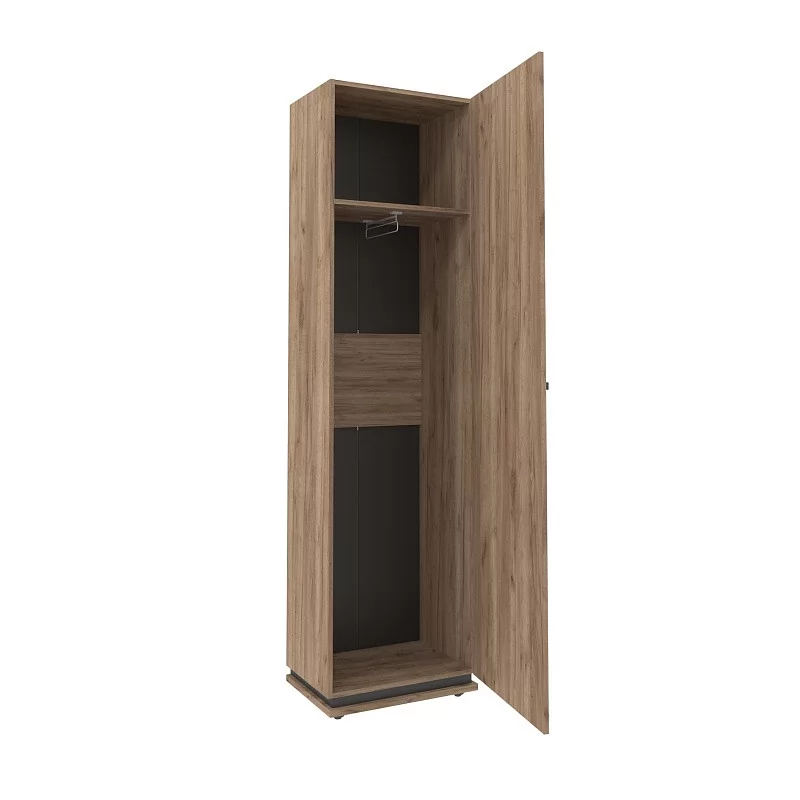 Распашной шкаф для одежды и белья комплектуется выдвижной штангой для одежды. Фасад шкафа перенавешивается на правую и на левую сторону.