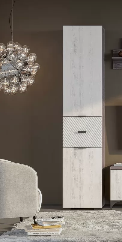 Новые современные цвета: черный ясень - глубокий серый, легкий и одновременно динамичный цвет в сочетании с санторини белым - цвет с древесными линиями, создающими гармоничный контраст. Визуальная легкость, эстетика графики, элегантная окантовка с четкими формами, баланс теплых и холодных оттенков легли в основу дизайна новых модулей.
