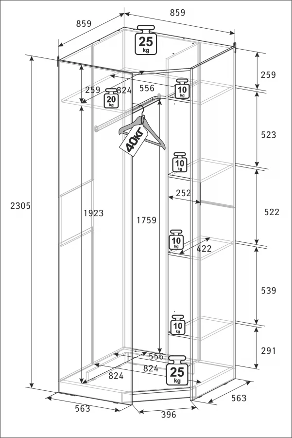 Ширина (мм): 859 Высота (мм): 2305 Глубина (мм): 859 Материал: ЛДСП Цвет: Белый Коллекция: Харрис