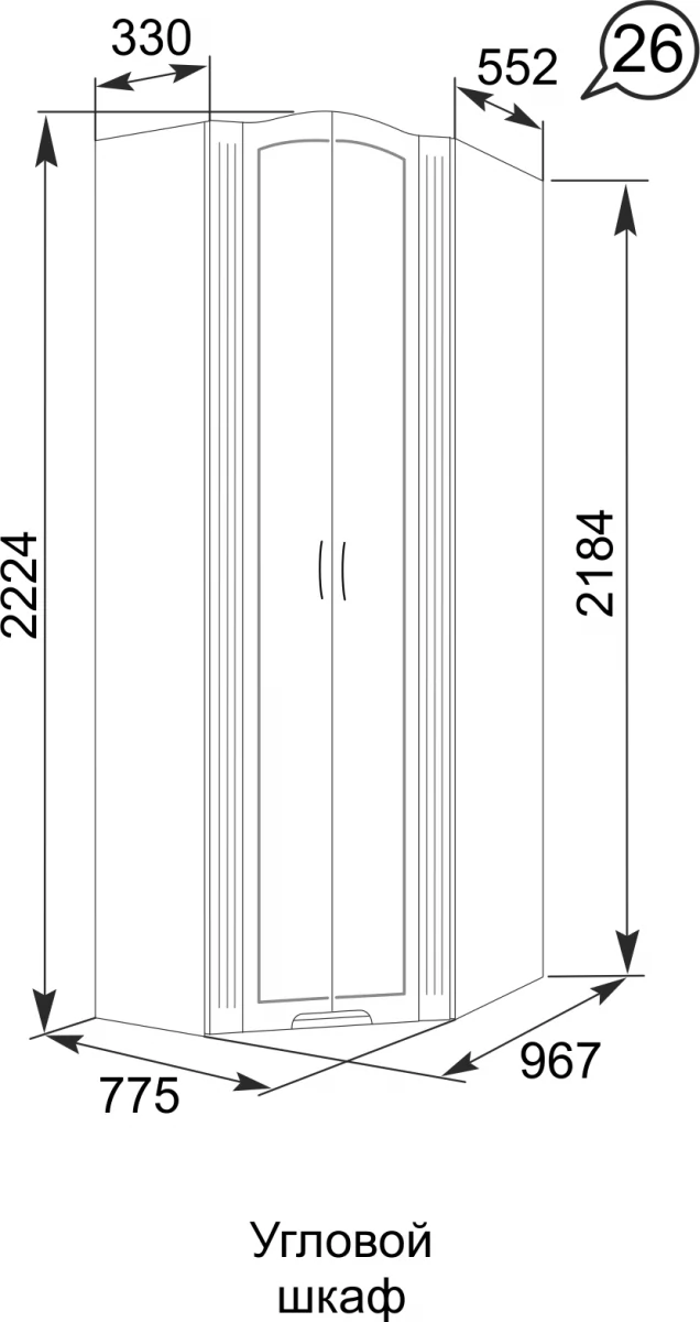 *Размеры (ДхВхШ):775х2184х967 мм