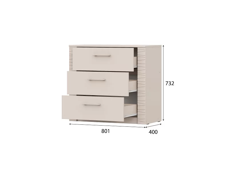 Ширина изделия, мм: 801Высота изделия, мм: 732Глубина изделия, мм: 400Материал фасада: МДФ, облицованный пленкой ПВХМатериал корпуса: ЛДСП Цвет фасада: МеланжМаксимальная нагрузка на ящики - 5кг.