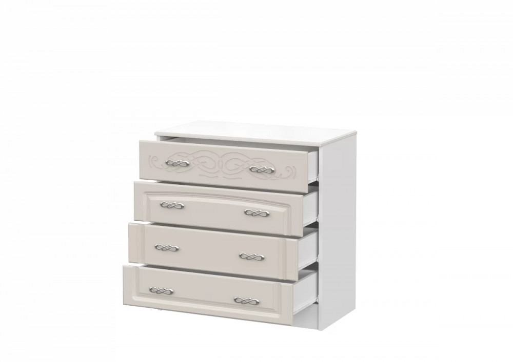 Комод подойдет даже для небольшой спальни, при этом четыре объемных ящика вместят белье и другие предметы гардероба