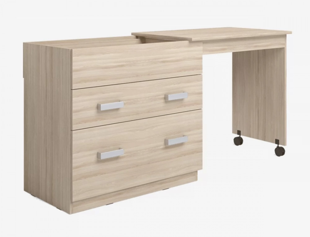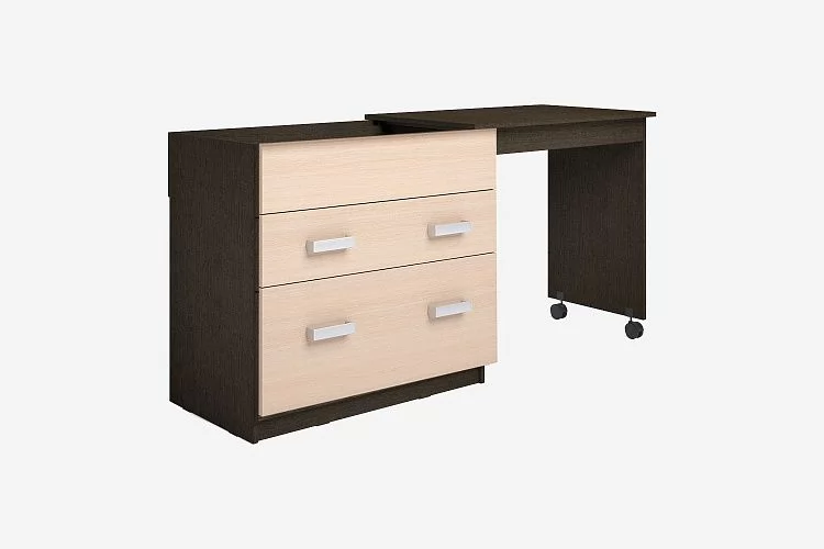 Комод-трансформер "Для увлечений" с выдвижной столешницей и дополнительным ящиком. Высота, как у обычного стола - 750 мм. Удобный вариант для небольших квартир - для комфортной работы за ноутбуком и занятий рисованием или рукоделием, в детскую.